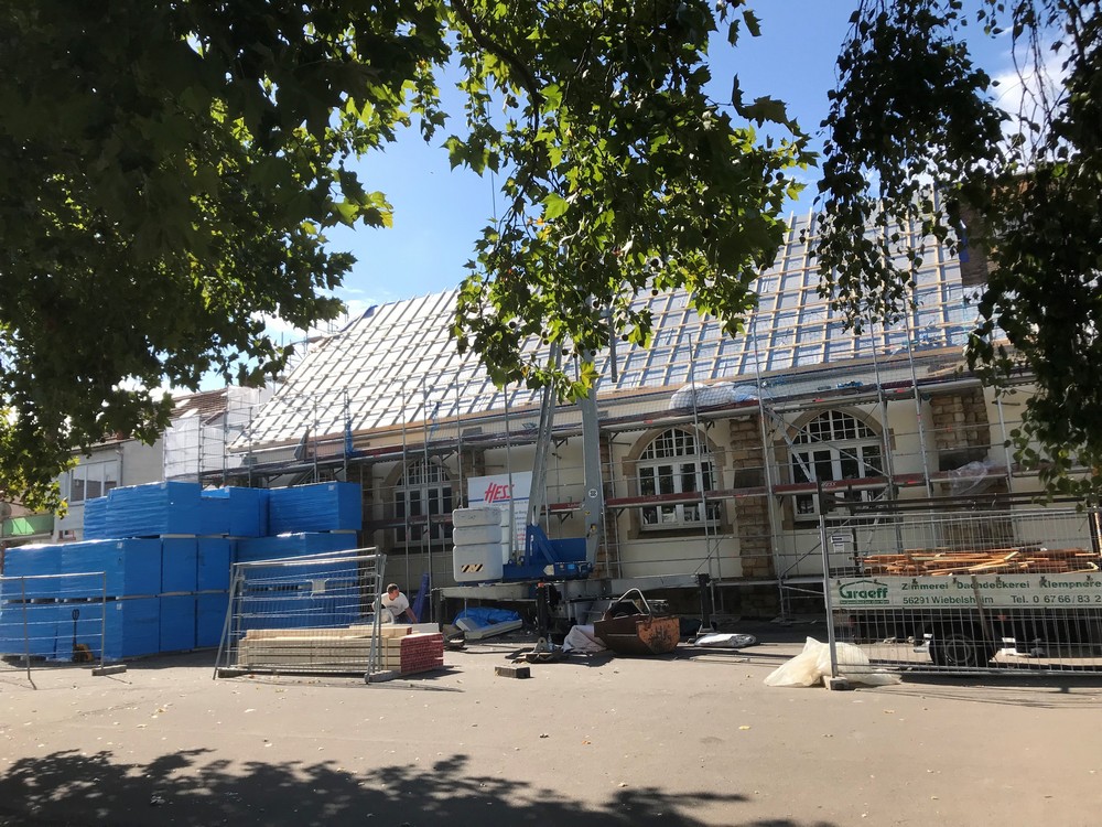 Die Stadt Oppenheim hat planmäßig mit der umfassenden energetischen Sanierung der Emondshalle begonnen. Bis zum Jahresende soll das Dach gedämmt, neu gedeckt und mit PV-Anlagen versehen sein. Außerdem erhält die denkmalgeschützte ehemalige historische Turnhalle eine innovative hybride Wärmeversorgung, die mit PV-Anlagen, Wärmepumpe und einen Gaskessel für die Spitzenlast über drei Energiequellen verfügt und daher Modellcharakter hat. Künftig wird ein Energiespeicher