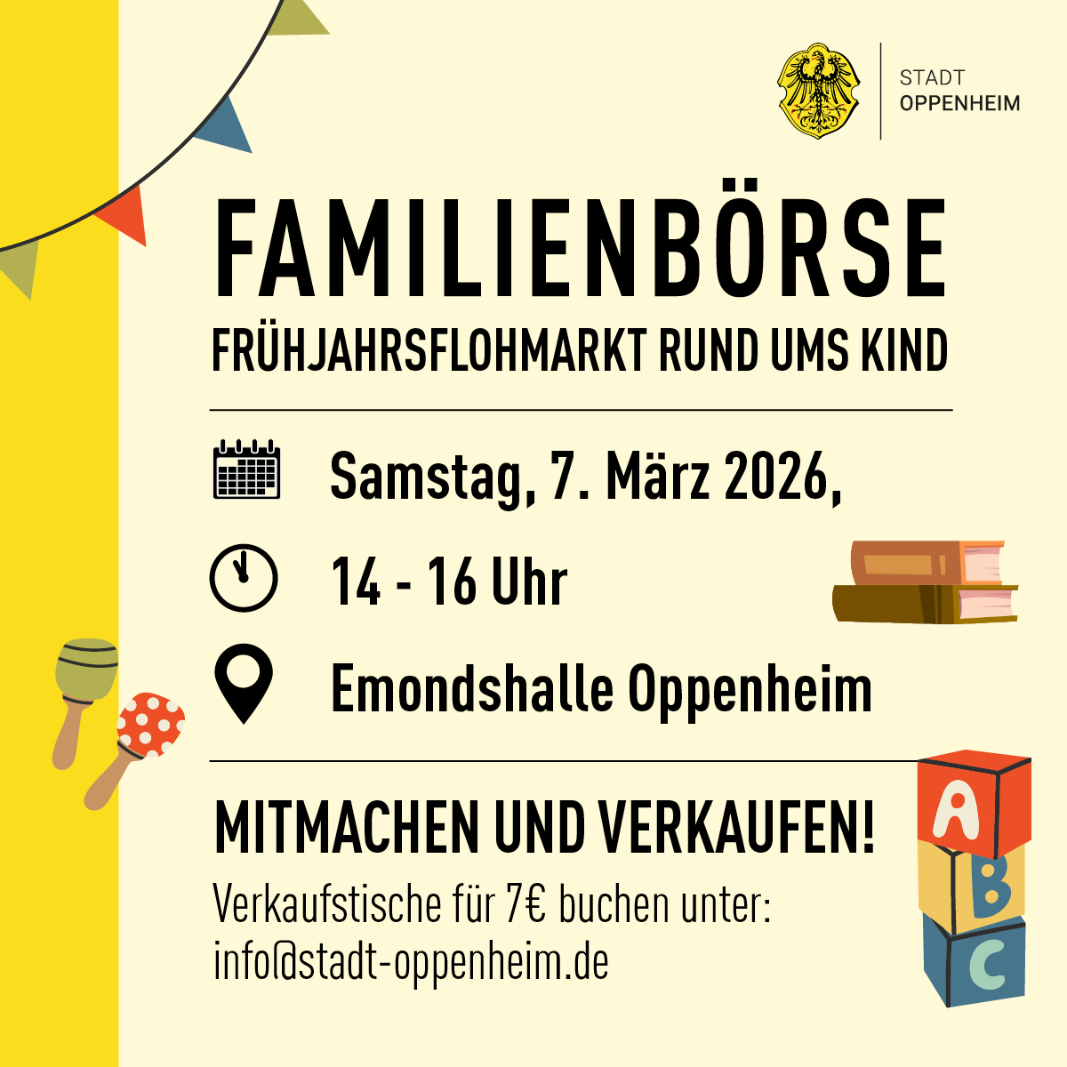 Mit der zweiten Auflage der „FamilienBörse – Frühjahrsflohmarkt rund ums Kind“ am 7. März 2026 in der Emondshalle setzt die Stadt die Reihe nach der erfolgreichen Premiere Ende des vergangenen Jahres fort. So sind in 2026 gleich zwei Flohmärkte geplant. Dabei wird von Kleidung und Spielzeug bis hin zu Kinderbüchern und Familienbedarf bei der FamilienBörse nachhaltiges Stöbern großgeschrieben. Der Frühjahrsflohmarkt