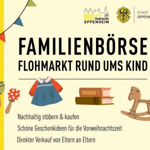 Am Sonntag, den 22. November, lädt die Stadt Oppenheim erstmals ein zu einem Flohmarkt rund ums Kind: Von Kleidung und Spielzeug bis hin zu Kinderbüchern und Familienbedarf wird bei der FamilienBörse nachhaltiges Stöbern und Kaufen großgeschrieben. Die Veranstaltung findet von 14.00 bis 17.00 Uhr in der Emondshalle statt. „Mit dem Termin im November bietet die FamilienBörse eine ideale Gelegenheit, um…