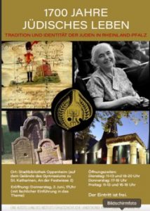 Ganze 1700 Jahre jüdisches Leben haben ihre Spuren hinterlassen – in Rheinland-Pfalz, in Rheinhessen und gerade auch in Oppenheim. Eine wechselvolle Geschichte mit tiefen Zäsuren und Brüchen, aber auch voller Vielfalt und Bereicherung. Die reichhaltigen Zeugnisse dieser Geschichte sichtbar zu machen, bleibt eine Aufgabe, der sich auch der Oppenheimer Geschichtsverein verpflichtet sieht. Aus diesem Grunde präsentiert der Geschichtsverein im Juni die Wanderausstellung „1700 Jahre jüdisches Leben – Tradition und Identität der Juden in Rheinland-Pfalz“, die das Institut für geschichtliche Landeskunde an der Universität Mainz konzipiert hat, in der Stadtbibliothek Oppenheim.