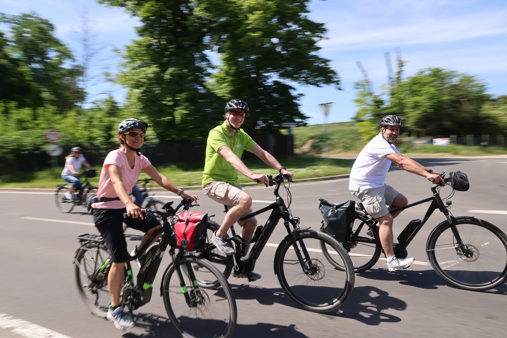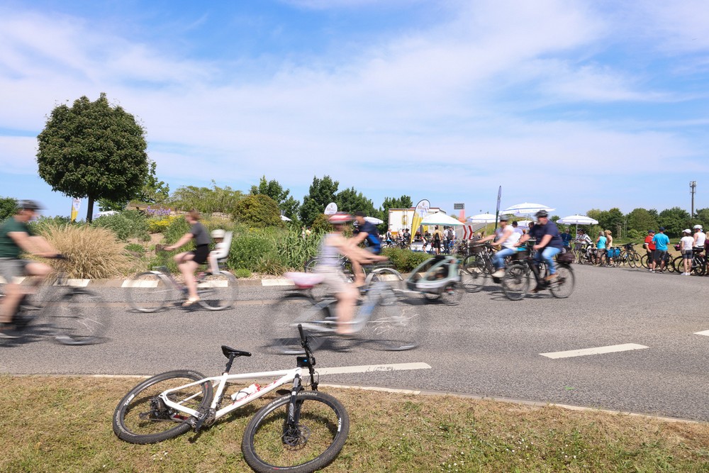 Satte 26 Grad und Sonnenschein lockte Zehntausende zum größten aktiven Volksfest in Rheinland-Pfalz. RheinRadeln zeigte erneut, wie vielfältig Rheinhessen ist. Als der Wormser Oberbürgermeister Adolf Kessel, die Oppenheimer Stadtbürgermeisterin Silke Rautenberg und EWR Vorstandssprecher Stephan Wilhelm zusammen den Startschuss geben wuselt es schon auf den Straßen. Bei bestem Fahrradwetter sind die Teilnehmerinnen und Teilnehmer schon früh gestartet.