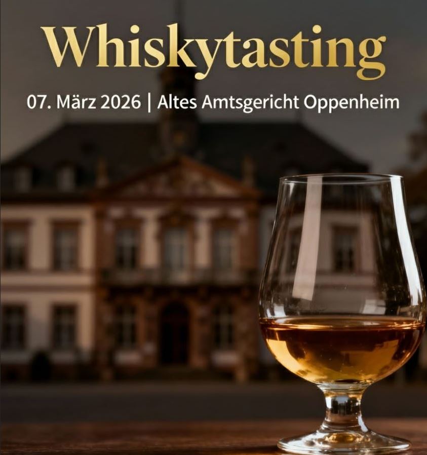 Hotel Altes Amtsgericht Amtsgerichtsplatz 1, Oppenheim„Whisky – Eine Reise um die Welt“ Wir nehmen euch mit auf eine genussvolle Reise durch die Welt des Whiskys: sechs erlesene und zugleich unterschiedliche Whiskysorten aus sechs Ländern von drei Kontinenten. Freut euch auf spannende Aromen, neue Perspektiven und internationale Highlights abseits der bekannten Single Malts aus Schottland. Erfahrt, was einzelne Länder, tausende Kilometer voneinander entfernt, in der Kunst der Whiskyherstellung eint und unterscheidet. Erlebt, was den Whisky aus jedem dieser Länder so einzigartig macht. Dieses Event eignet sich sowohl für Einsteiger als auch für geübte Whiskykenner. Dauer: ca: 3 Stunden, Snack zur Halbzeit. Infos und Ticktes auf der Homepage. Eintrittspreise: 75€ pro Person Abendkasse: nein Vergünstigungen: Gruppenrabatt auf Anfrage