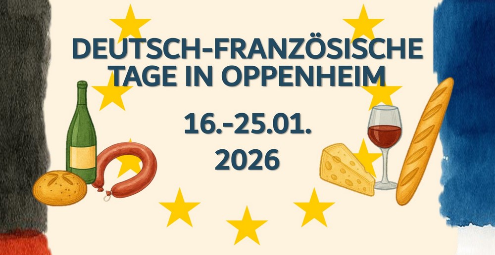 Der Deutsch-französische Tag am 22.Januar erinnert an die Unterzeichnung des Elysee-Vertrages im Jahr 1963, mit dem die Versöhnung und Zusammenarbeit zwischen Frankreich und Deutschland besiegelt wurde. Um diesen Tag zu feiern und Interesse an der Kultur unseres Nachbarlandes zu wecken, veranstaltet die Partnerschaft Oppenheim-Givry gemeinsam mit weiteren Oppenheimer Vereinen die Deutsch-französischen Tage 2026. Im Gautor befasst sich die Ausstellung „Der gescheiterte Friede“ des Oppenheimer Geschichtsvereins mit der Besatzungszeit 1918-1930 im heutigen Rheinland-Pfalz. Den Einführungsvortrag zur Ausstellung hält Fr. Dr. Ute Engelen vom Institut für geschichtliche Landeskunde. KommKi zeigt im Weinbaumuseum den französischen Film „Monsieur Aznavour“ - eine Biographie des berühmten Chansoniers Charles Aznavour. Kulinarisch wird der Filmabend durch ein Buffet mit französischen Spezialitäten passend abgerundet. Der Kulturverein Landskron lädt zu französischem Swing und Chansons mit der Gruppe „Nid de Poule“ in den Zollpfortenkeller ein. Bei einem Sektempfang der Partnerschaft Oppenheim-Givry finden die Deutsch-französischen Tage ihren Abschluss. Die Karten für den Filmabend sind an den üblichen Vorverkaufsstellen erhältlich, der Eintritt für die anderen Veranstaltungen ist frei. Unterstützt werden die Veranstaltungen durch die Stadt Oppenheim und den Deutsch-Französischen Bürgerfonds, der sich zum Ziel gesetzt hat, Europa und insbesondere die deutsch-französische Freundschaft in der Breite der Bevölkerung erlebbar zu machen. Wir freuen uns darauf, Sie bei unseren Veranstaltungen im Januar zu begrüßen. Der Vorstand der Partnerschaft Oppenheim-Givry e.V.