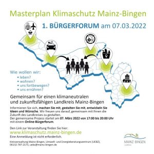 Den Link zur Online-Veranstaltung und mehr Infos zum Masterplan gibt hier: www.klimaschutz.mainz-bingen.de.