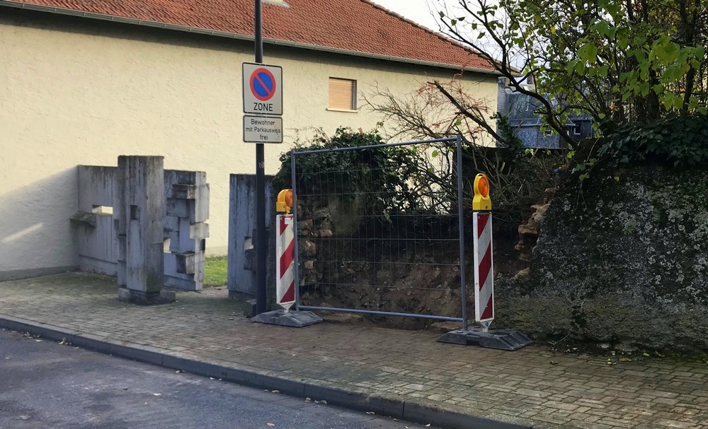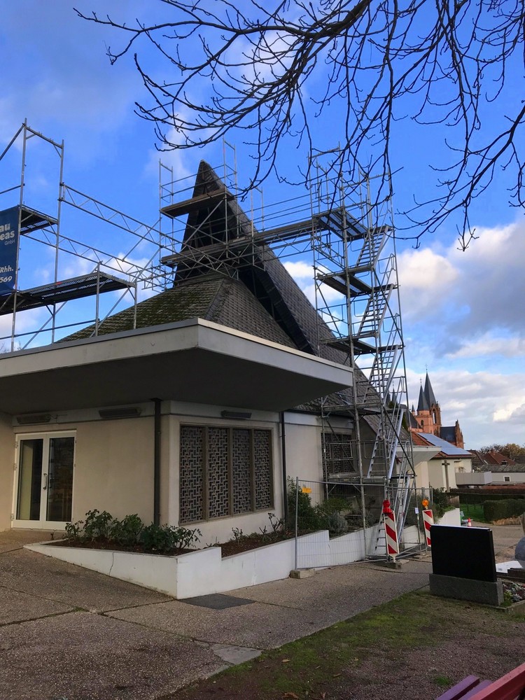 Sowohl an der Trauerhalle als auch an der Friedhofsmauer in Oppenheim erfolgen derzeit Sanierungsarbeiten.