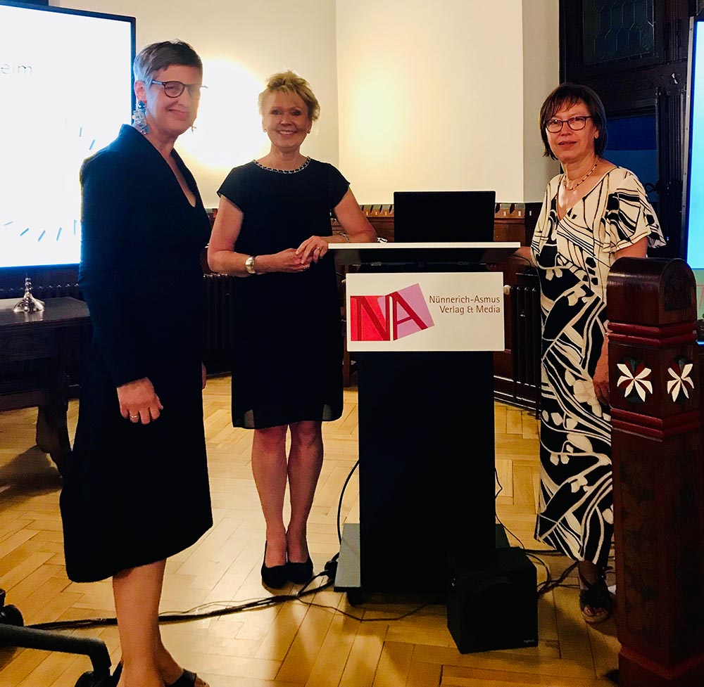 Anlässlich der Jubiläumsfeier am vergangenen Freitag (2.9.) gratulierten auch Stadtbürgermeisterin Silke Rautenberg und Beigeordnete Susanne Pohl und überbrachten Verlegerin Dr. Annette Nünnerich-Asmus die Glückwünsche der Stadt: „Wir freuen uns, eine so engagierte Unternehmerin vor Ort zu haben. Der Verlag ist eine Bereicherung für das wirtschaftliche und kulturelle Leben in unserer Stadt“.