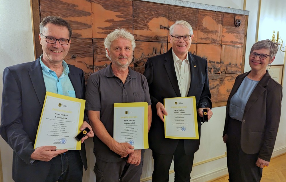 - 15 Jahre Stadtrat: Torsten Kram (WfO), Jürgen Schiffel (AL), Helmut Krethe (BLO)